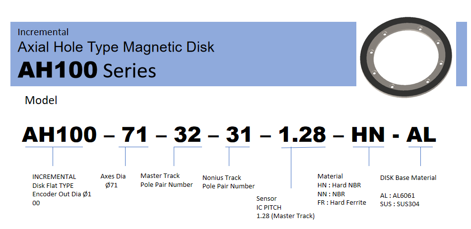 Incremental Axial Hole Type Magnetic Disk AH100 Series