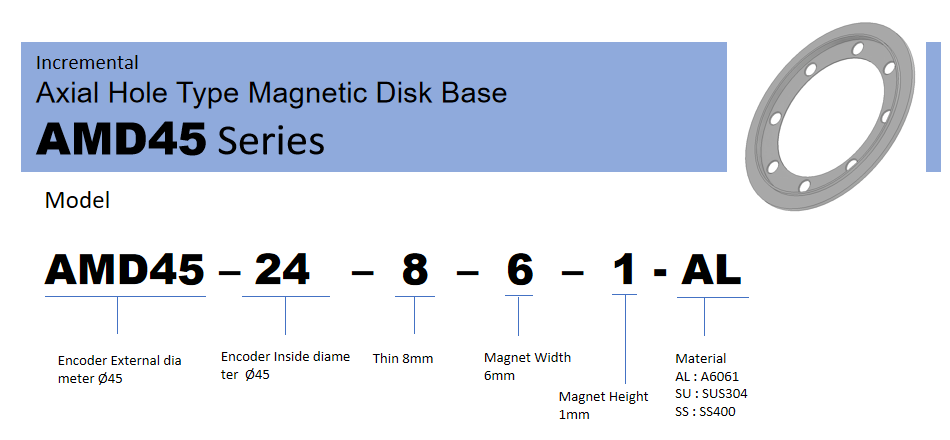 Incremental Axial Hole Type Magnetic Disk Base AMD45 Series